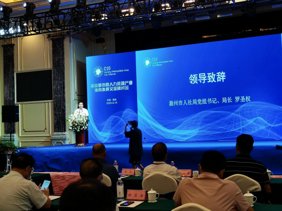 南京市、镇江市、扬州市、淮安市、马鞍山市、滁州市、芜湖市、宣城市以及常州市溧阳、金坛等南京都市圈人社局领导出席会议。滁州市人社局党组书记、局长罗圣权在会上致辞。