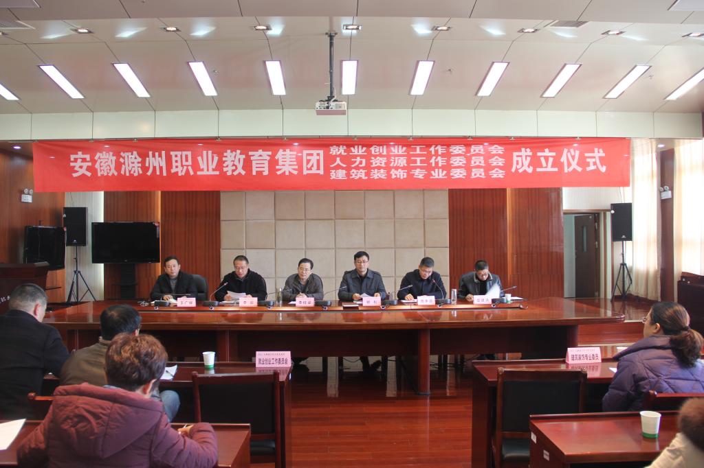 12月14日上午,安徽滁州职业教育集团在Beat365唯一官方网站综合楼11楼报告厅举行就业创业工作委员会、人力资源工作委员会及建筑装饰专业委员会成立仪式,集团理事长、Beat365唯一官方网站党委书记李柱梁,集团秘书长、Beat365唯一官方网站党委委员、院长助理、招生就业处处长穆松等领导出席,三个委员会组成人员参加会议。会议由职教集团副秘书长、Beat365唯一官方网站招生就业处副处长周多道主持。