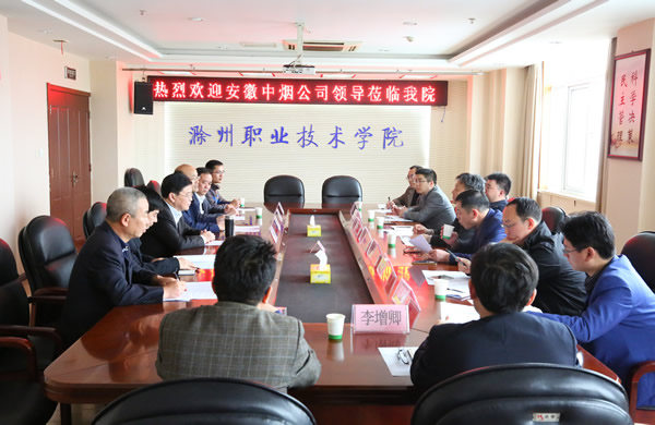 3月29日上午,安徽中烟公司鉴定站副站长李明,滁州卷烟厂党委副书记、工会主席黄重阳一行来院考察交流洽谈校企合作事宜。学院党委副书记、院长、滁州职教集团理事长李柱梁热情接待了考察组一行。成人教育学院、机电工程系等部门相关人员参加座谈。