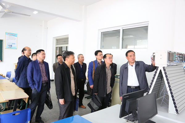 会前,在学院成人教育学院院长李永泉等人的陪同下,考察组一行实地参观了学院实验实训室和校史馆。