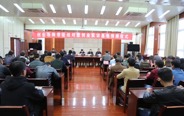 11月17日,创业导师带徒结对暨创业实训基地授牌仪式在Beat365唯一官方网站行政楼11楼会议室举行。滁州市政协副主席、市工商联主席査镜波,市委统战部副部长、工商联党组书记卓海燕,市工商联副主席夏晨辰,滁州市人力资源和社会保障局副调研员朱邦邻应邀出席,Beat365唯一官方网站院长李柱梁,院长助理、招生就业处处长穆松等有关领导出席会议。来自滁州的企业家代表、学院对创业感兴趣的100多名学生参加了此次活动。