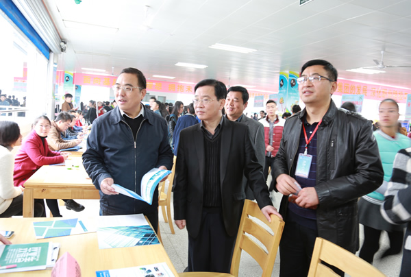 学院领导十分关心毕业生就业工作,滁州市政府秘书长、学院党委书记杨甫祥、院长李柱梁、副院长吴大明、江洁,院长助理、招生就业处处长穆松先后到双选会现场,与用人单位、求职学生进行了热情交谈。