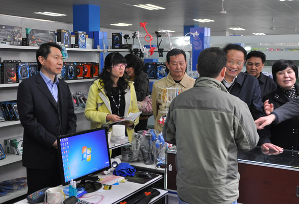 王启敏秘书长一行先后来到学院实训实验室和大学生创业孵化基地,实地考察了实训实验室和孵化基地的规模和运行情况。