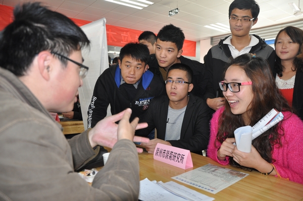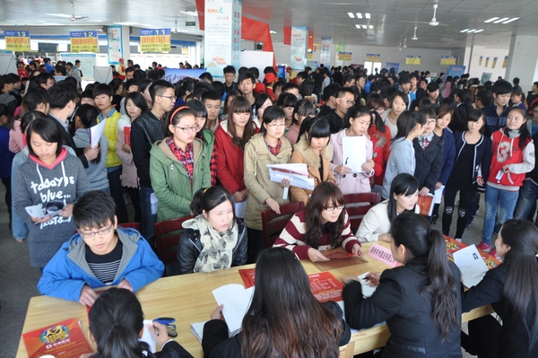 11月16日,安徽滁州职业教育集团在Beat365唯一官方网站成功举办2014届毕业生双选洽谈会(面向集团成员单位专场)。学院领导沈中林、李柱梁、牛春雨、江洁、穆松及市人社局副调研员肖鸿等来到招聘现场,并与企业招聘负责人进行交谈,了解企业招聘学生情况及用工的情况。各系负责人、部分辅导员及3000多名毕业生参加了双选会。