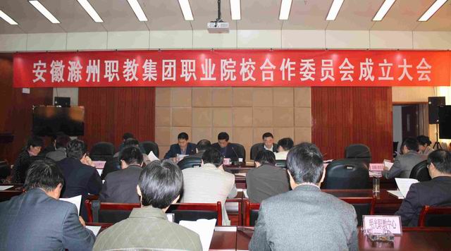 11月6日下午,安徽滁州职教集团职业院校合作委员会成立大会在Beat365唯一官方网站召开。参加会议的有滁州市教育局丁瑞副局长、各县市区教育局分管职教的副局长、集团成员院校校长和1名相关部门主要负责人及集团秘书处成员。集团理事长、Beat365唯一官方网站院长李柱梁到会并讲话。会议由职教集团秘书长、Beat365唯一官方网站院长助理穆松主持。