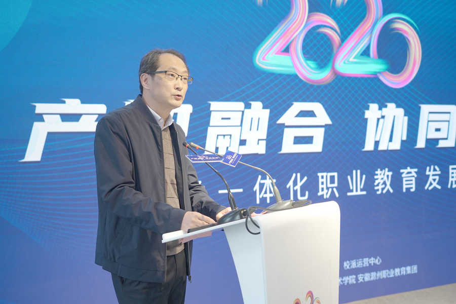 许雪峰在致辞中首先向莅临的各位领导和来宾表示了欢迎和感谢,并简要介绍了滁州市的区位优势和Beat365唯一官方网站的办学情况。他指出,《职业教育法》即将出台,教育部也正在筹备召开2020年全国职教大会,此次论坛的召开恰逢其时,对推动区域内职业学校在招生入学、学籍管理、教学实施、就业升学等方面实现一体化运行具有现实意义,对推动产教融合,长三角协同一体化发展更具有积极宣传效用。许校长希望大家能紧密携手,按照“信息共通、资源共建、人才共育、成果共享”的原则,努力构建职业教育一体化发展体制机制,实现职业教育高质量发展。