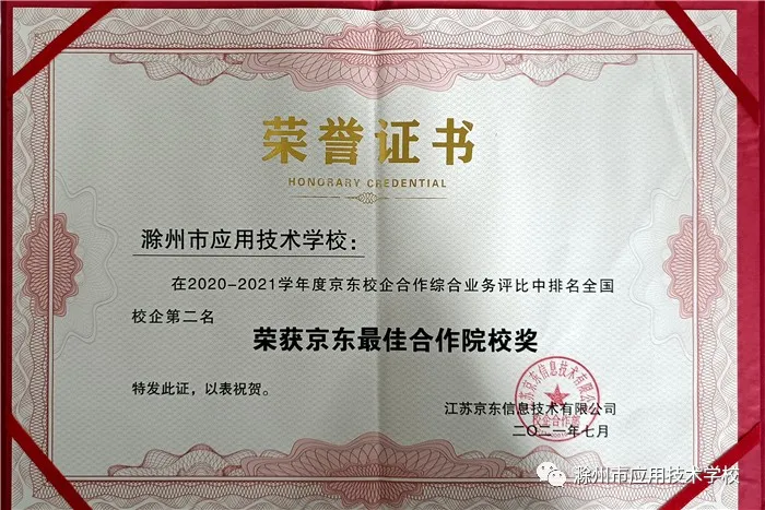 为进一步响应国家提出的关于“深化产教融合、校企合作”的号召,凝聚学校与企业的力量,促进教育教学改革,实现专业与产业、企业、岗位对接,2020年7月20日上午10时30分,“滁州市应用技术学校·京东校企合作”项目签约仪式在京东全国客户服务中心一期VIP会议室隆重举行。