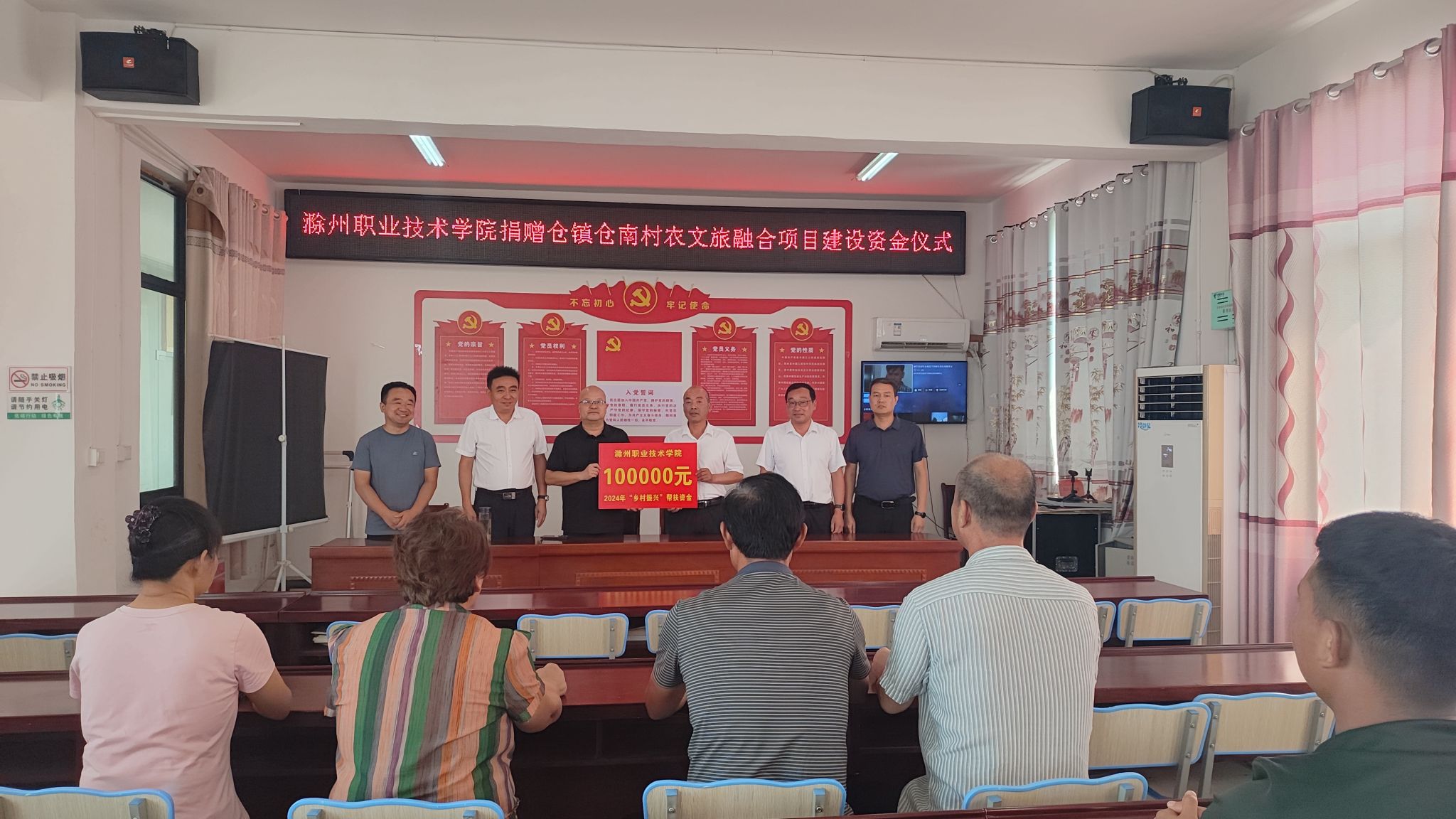 胡凼详细了解了仓南村在经济发展、农产品销售以及人居环境改善等方面取得的成绩以及相关工作开展情况,就农产品销售渠道、农产品品牌打造等工作现场与镇、村领导交流探讨,并代表学校向仓南村捐赠2024年乡村振兴帮扶资金。
