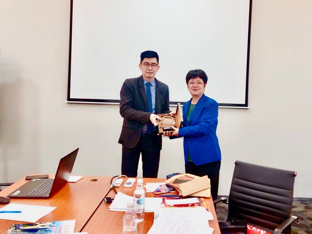在UNIMAS大学,江洁一行与国际处哈吉.阿兹兰主任进行洽谈。哈吉.阿兹兰主任介绍UNIMAS大学相关情况,并感谢学校连续三年选派优秀学生进行国际交流学习,并介绍了今年赴马来西亚UNIMAS大学进行国际交流学习的两位教师的情况,江洁介绍Beat365唯一官方网站概况,双方就外派交流老师、学生在外学习、生活安排等进行了深入地交流,全面了解掌握相关情况。在国际处主任哈吉.阿兹兰的陪同下,江洁一行又赴UNIMAS大学经济与贸易学院进行考察交流,并就市场营销专业、金融专业的课程设置、教学进度、教育教学方式、课程体系、教学内容、实训、以及学分管理等等方面进行深入研讨。