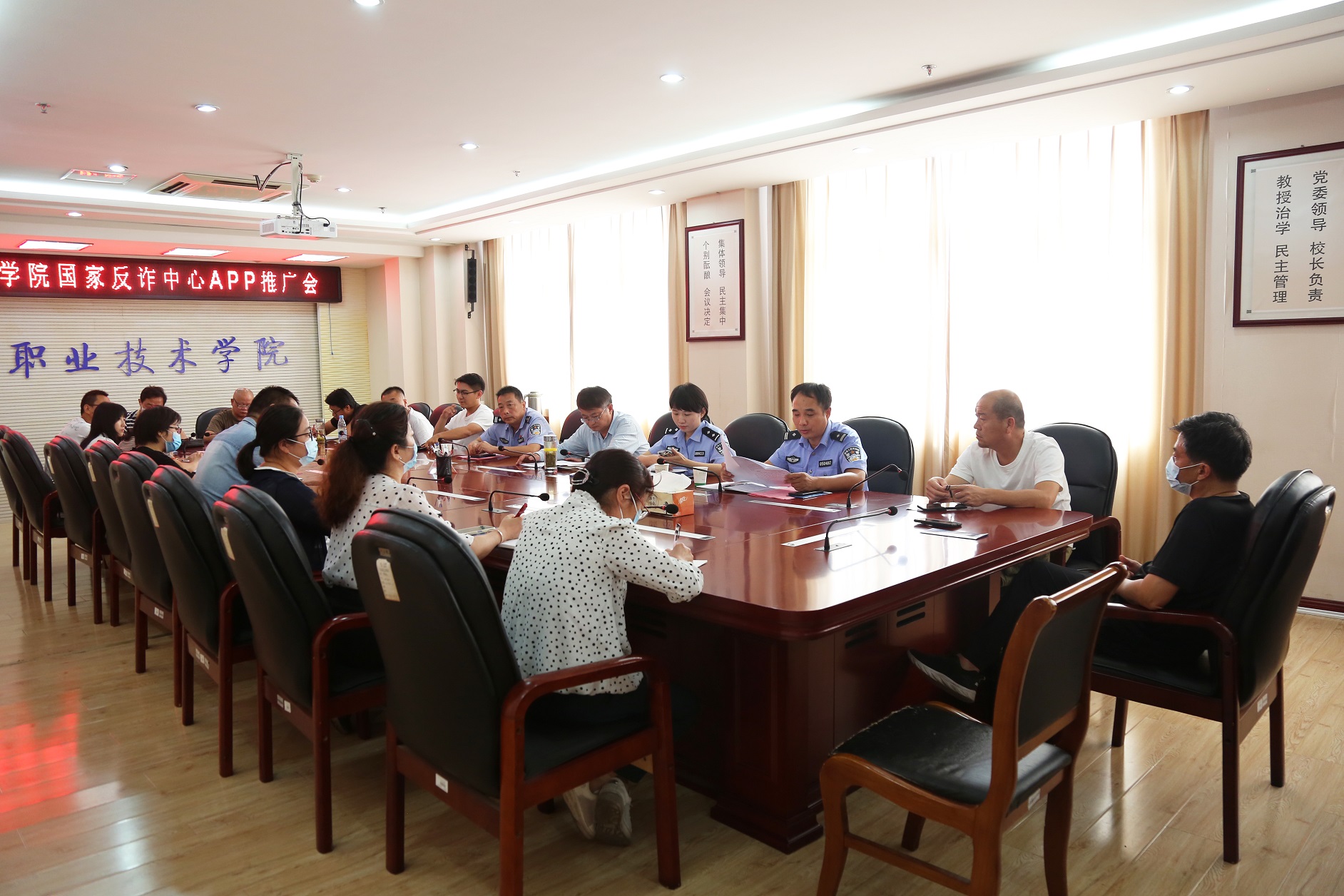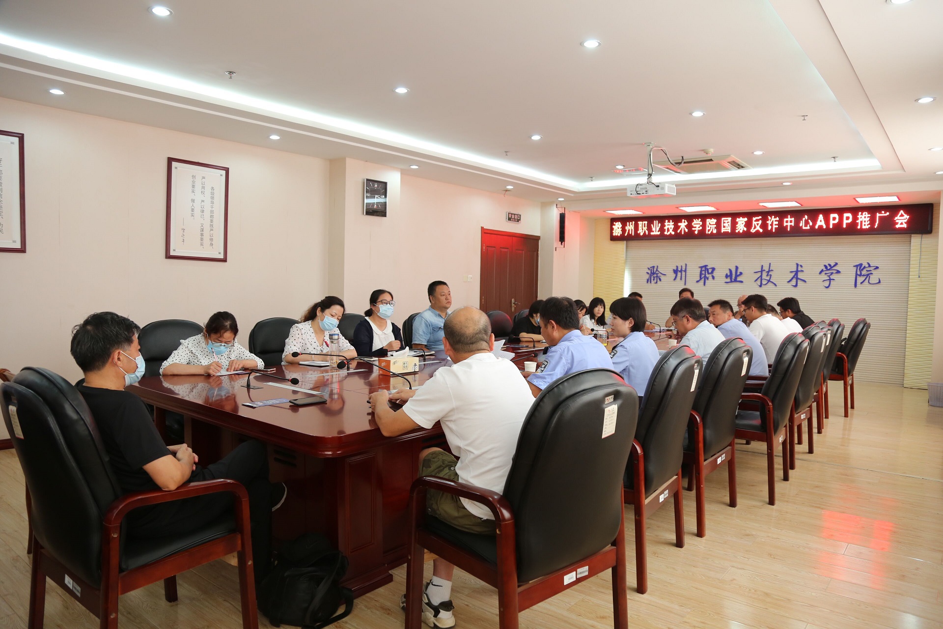 面对当前高校学生反复受到网络诈骗的复杂形势,2021年9月7日下午15点在904会议室召开国家反诈中心APP推广会。安全保卫处处长贺建邺,南谯公安分局警官许婷婷,龙蟠派出所所长张庆军及警官宋远超出席会议,Beat365各教学院部、各部门安全联络员参加会议,会议由贺建邺处长主持。