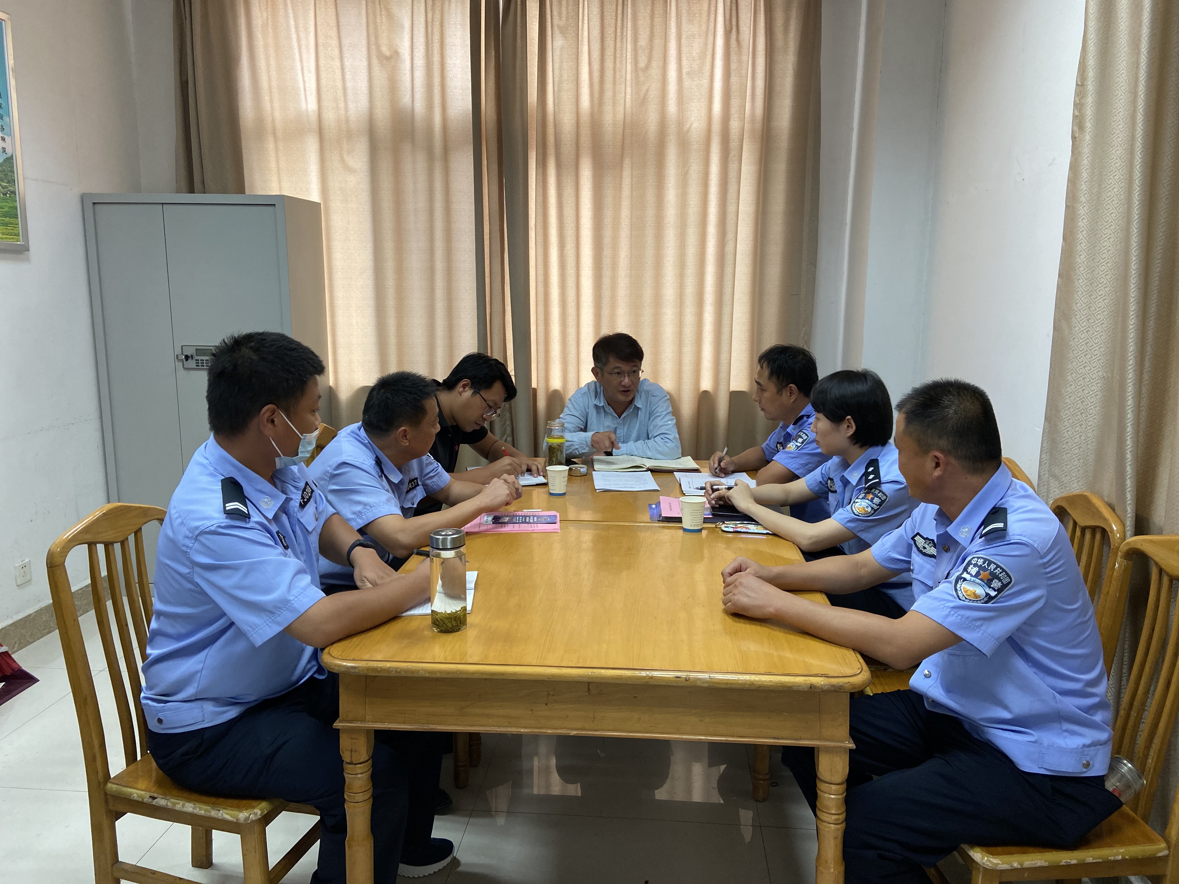 2021年9月7日在综合楼112召开安全保卫处与龙蟠派出所工作对接会,会议由贺建邺处长主持,南谯分局警官许婷婷、龙蟠派出所所长及警官宋远超,安全保卫处全体人员参加会议。