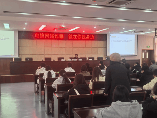 在互动环节,许警官与学生们积极互动,提出了一系列与反诈知识相关的问题,学生们纷纷踊跃举手抢答,现场气氛十分活跃,进一步激发了大家学习反诈知识的热情,让大家更加直观地感受诈骗分子的话术和技巧,学会如何在日常生活中识别和应对诈骗。