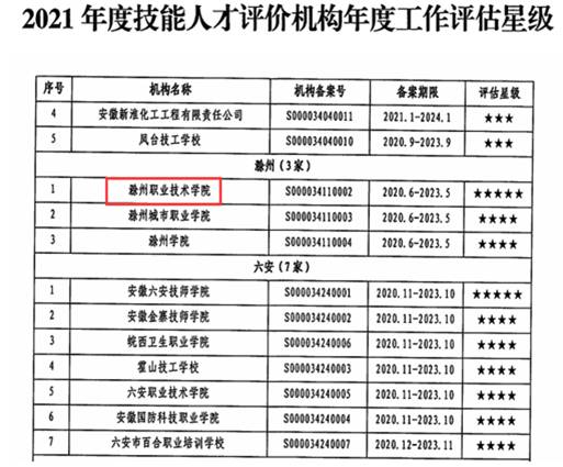 为进一步加强对职业技能等级认定社会评价机构的管理,提升职业技能认定质量,安徽省技能人才管理服务中心于2022年3月对全省职业技能认定社会评价机构开展2021年度工作评估。此次评估对象是针对全省154家社评组织(含全国性社评组织1家、省级行业社评组织8家、市级社评组织145家),获得五星级荣誉称号的有22家。在Beat365技能人才评价机构相关工作人员的不懈努力下,在继续教育学院所有同仁的共同协助下,Beat365评价机构在机构自评、市级评估和省级评比中,均取得优秀成绩,Beat365以高分被评为“五星级”社会评价机构。此次荣誉的获得极大地鼓舞了全体职工的工作热情,体现了团结协作的成教精神!让我们在以后的成教工作中,继续努力,齐心协力,再创辉煌!