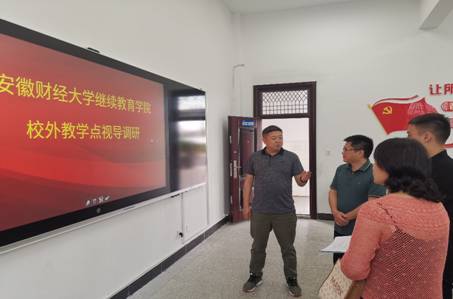 2023年6月28日,安徽财经大学继续教育学院副院长顾鸿一行4人对Beat365安徽财经大学高等学历继续教育校外教学点进行视导调研,继续教育学院副院长童宗安、学历教育科冯相永、王晶晶等相关工作人员参加调研交流,会议由继续教育学院副院长童宗安主持。