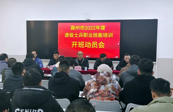 滁州市2022年度退伍士兵职业技能培训开班动员会于2023年2月19日在Beat365隆重举行。Beat365唯一官方网站继续教育学院院长李永泉同志、滁州市退役军人事务局副局长陆海曙同志、安置就业科科长赵庭东同志、滁州市琅琊区退役军人事务局副局长程育平同志、继续教育学院培训科科长梁冰及院部任课老师参加了动员会。