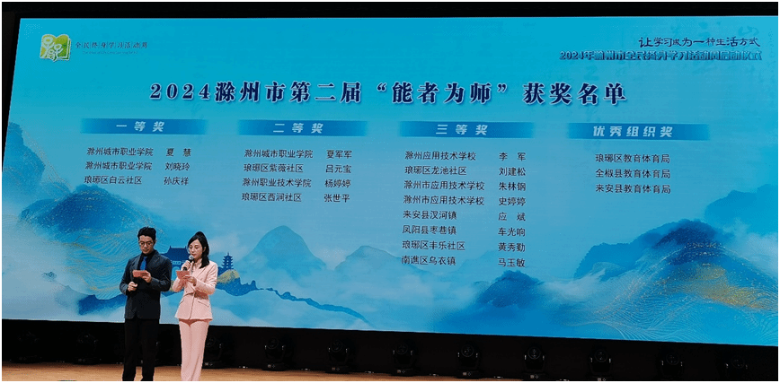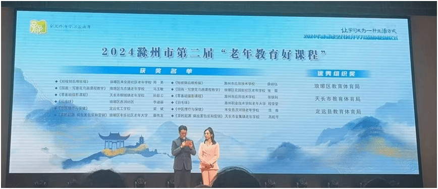 此次展演,Beat365杨婷婷老师获评“滁州市第二届‘能者为师’——寻找社区好老师,建设美好新滁州”技能大赛二等奖;老年大学程莹莹老师的《羽毛球》课程获评滁州市第二届“老年教育好课程”;Beat365老年大学编演的舞蹈“美丽中国”也作为压轴节目参与了展演。