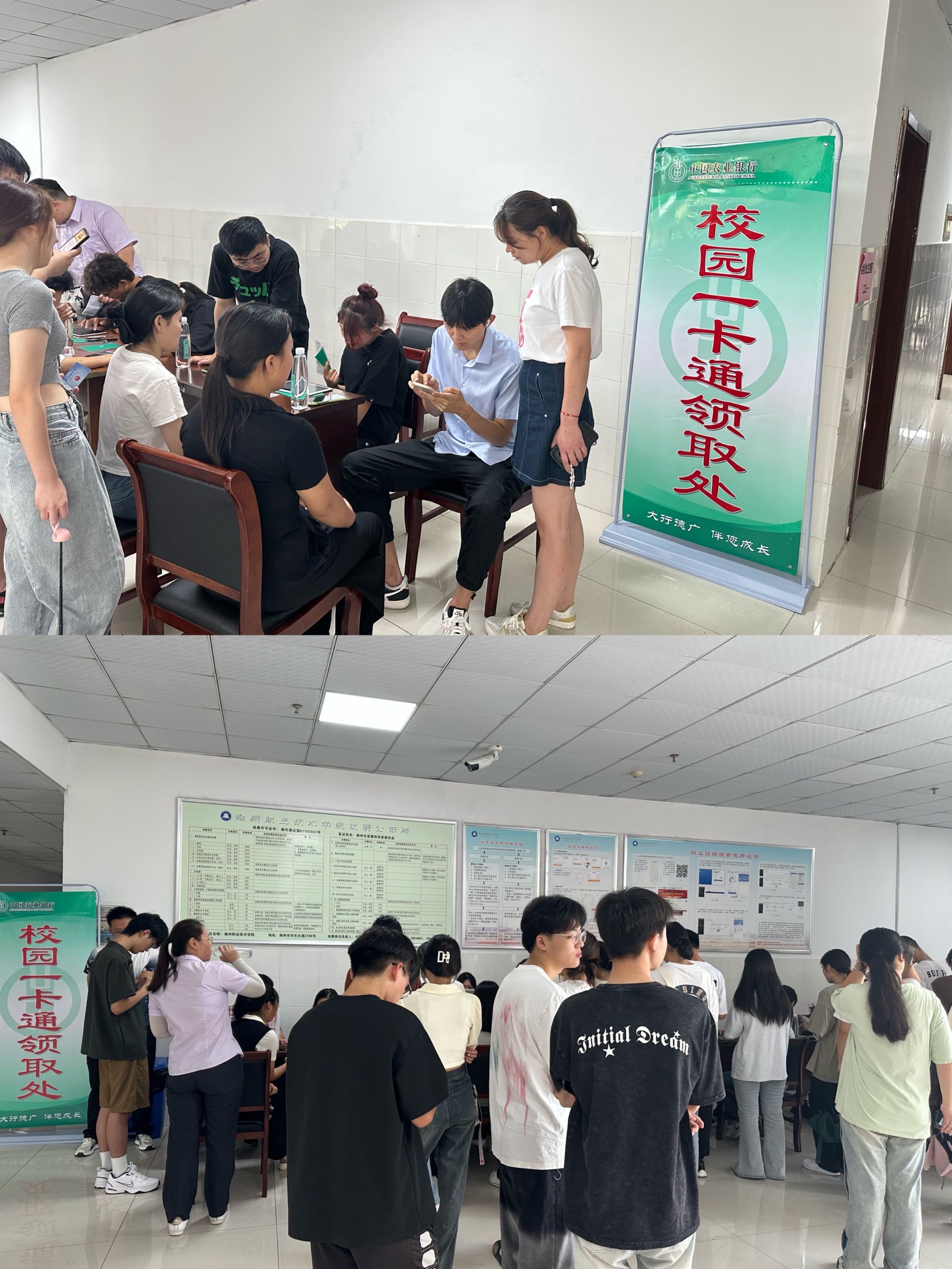 计划财务处积极与银行对接,提前制作好新生校园一卡通(社保卡),用于学生在校期间缴纳学费、食堂就餐、超市购物、发放各类奖助学金等。新生报到时,计划财务处人员分赴各二级学院报到点发放卡片,方便同学校园生活。学生报到完毕后,立即联系银行上门,有序为学生进行卡片激活,免去了学生外出至银行网点的奔波,确保学生一卡通功能的使用。