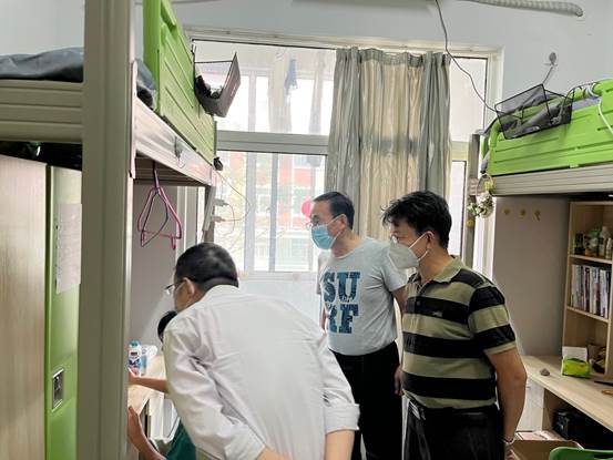 9月6日上午10点,苏有良一行深入学生宿舍看望慰问学生,检查指导疫情防控和线上教学工作,详细了解宿舍网络畅通方面、教师上课质量、线上教学互动、线上上课学习成效等情况,苏有良强调,各教学院部、各部门要严格按照学校党委的工作部署,履职尽责,不折不扣落实学校疫情防控各项规定和要求,组织保障好线上教学工作,切实提升学习效果,努力提高教学质量。