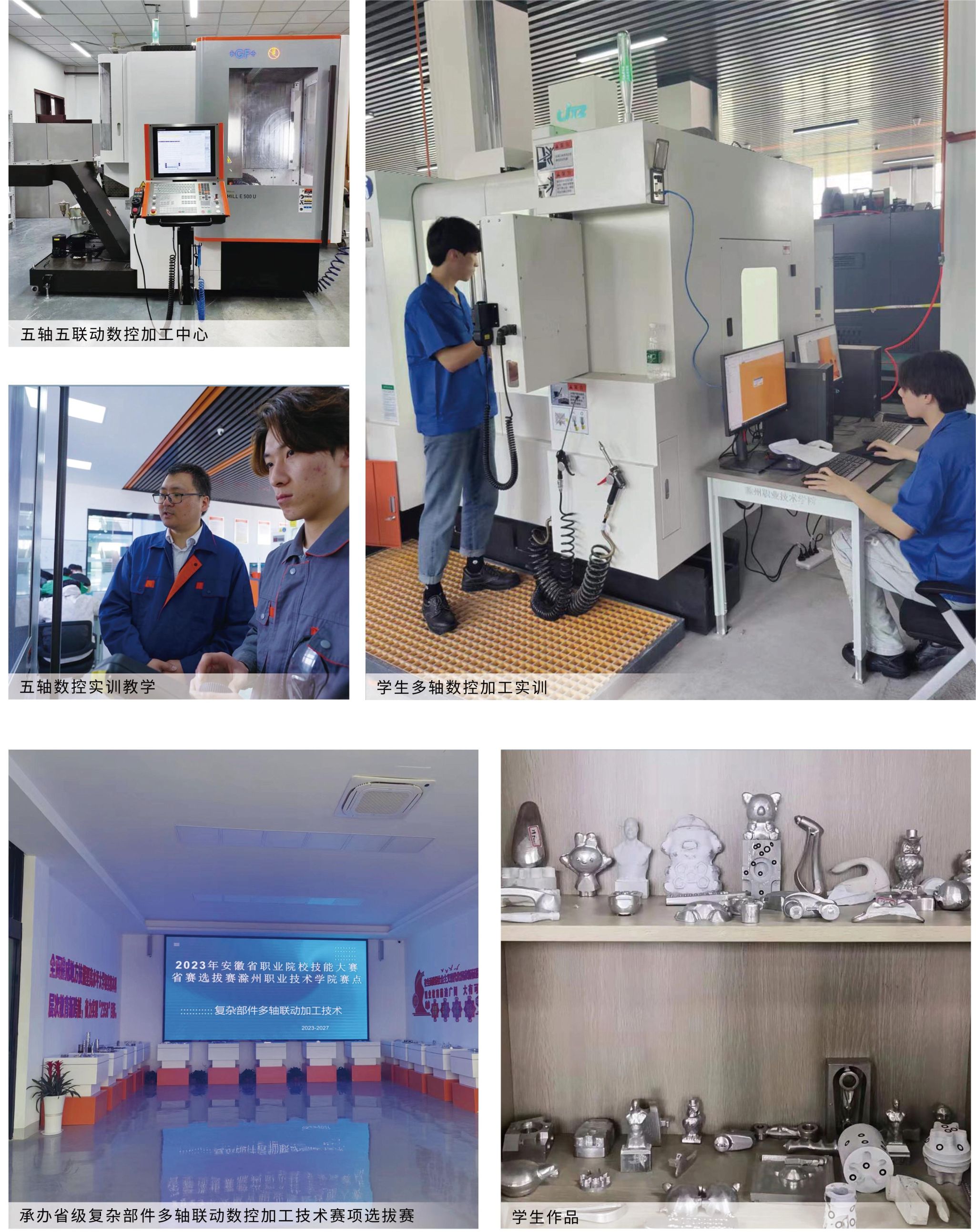 实训基地积极开展产教融合,校企合作,主要服务滁州市高端装备制造产业和智能家电产业;为企业提供技能培训、产品研发、工艺编制、零件编程、新产品试制等服务。2021年6月与瑞士乔治费希尔加工方案GF公司合作申报建设国家级智能制造实践基地。2022年2月基地成为首批教育-瑞士GF智能制造创新实践基地培育建设单位。