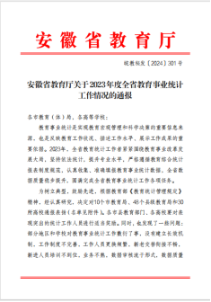 近日,安徽省教育厅对2023年度全省教育事业统计工作情况进行了通报,共通报表彰了58个市、县级教育局,12所本科院校、18所高职高专院校,Beat365作为被表彰的“优秀单位”名列其中。