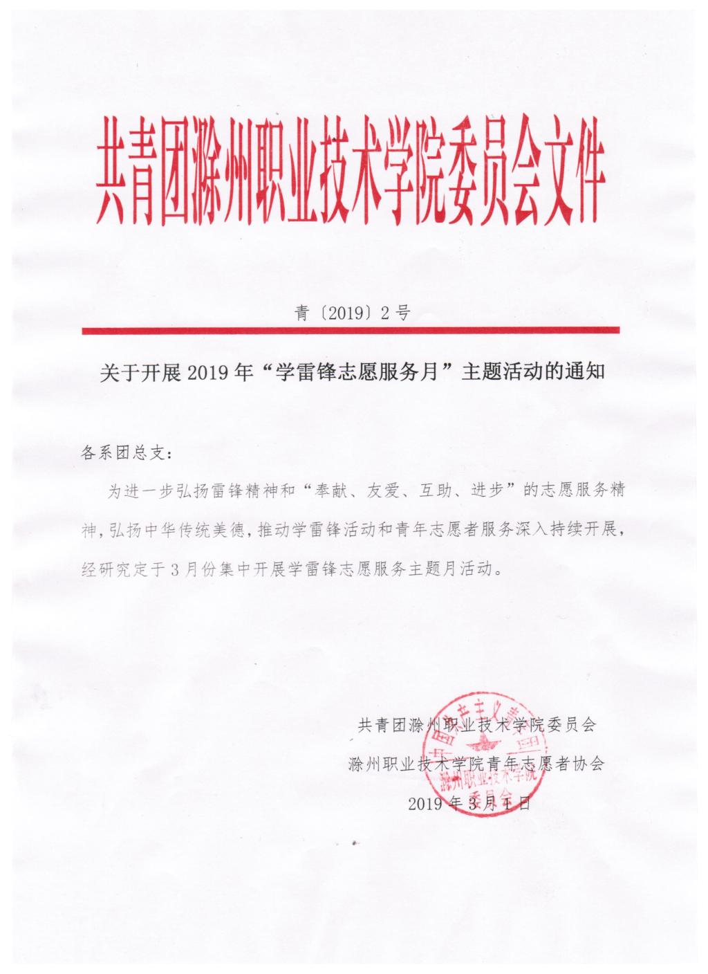 201902关于开展2019年“学雷锋志愿服务月”主题活动的通知