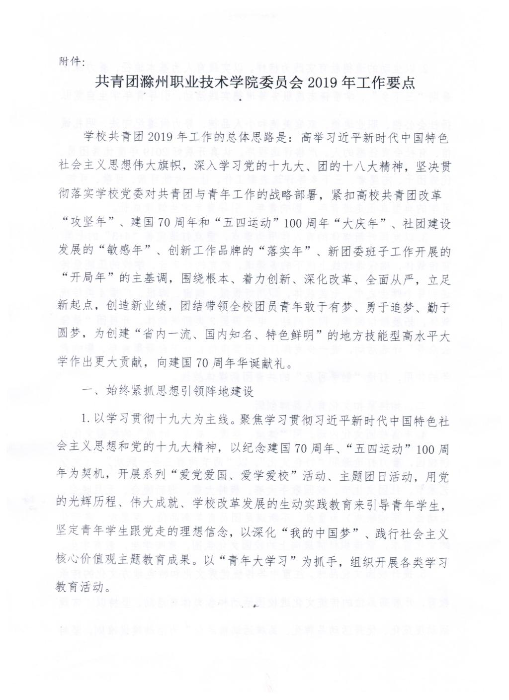201903关于印发《共青团Beat365唯一官方网站委员会2019年度工作要点》的通知