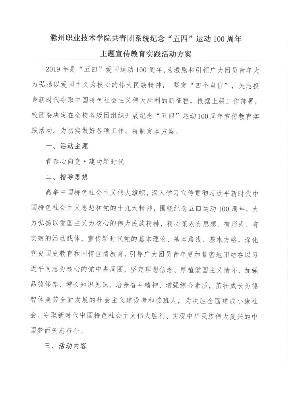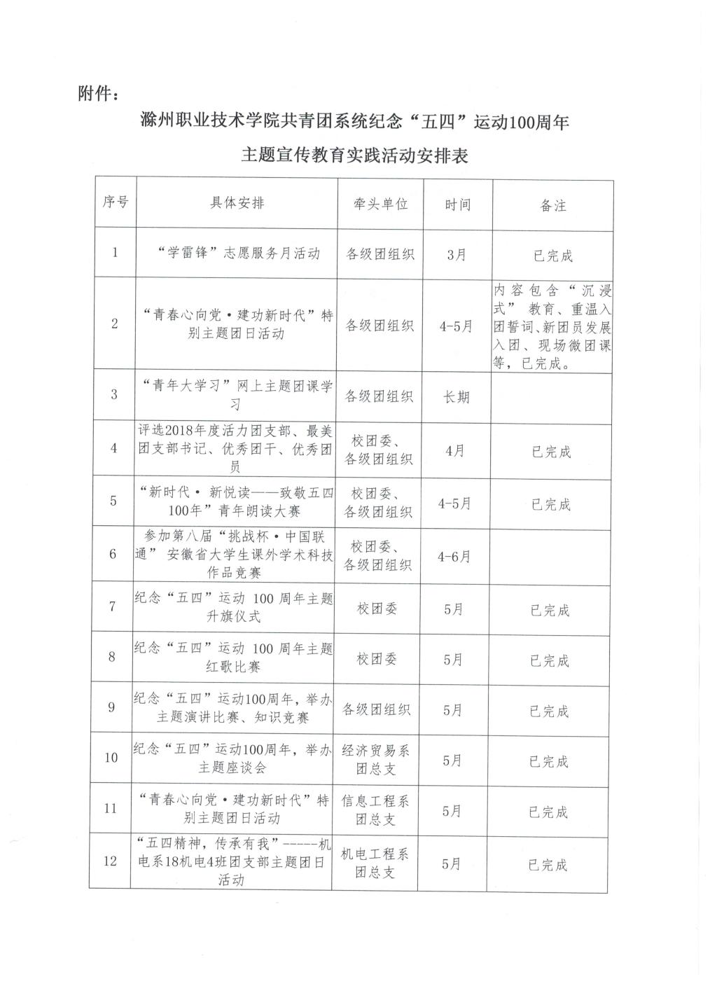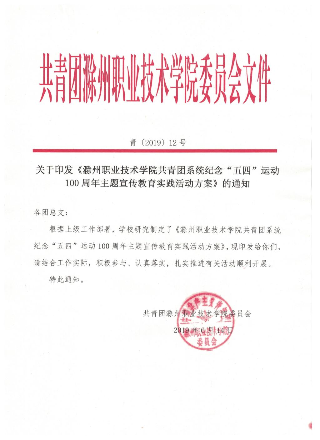 201912 关于印发《Beat365唯一官方网站共青团系统纪念“五四”运动100周年主题宣传教育实践活动方案》的通知