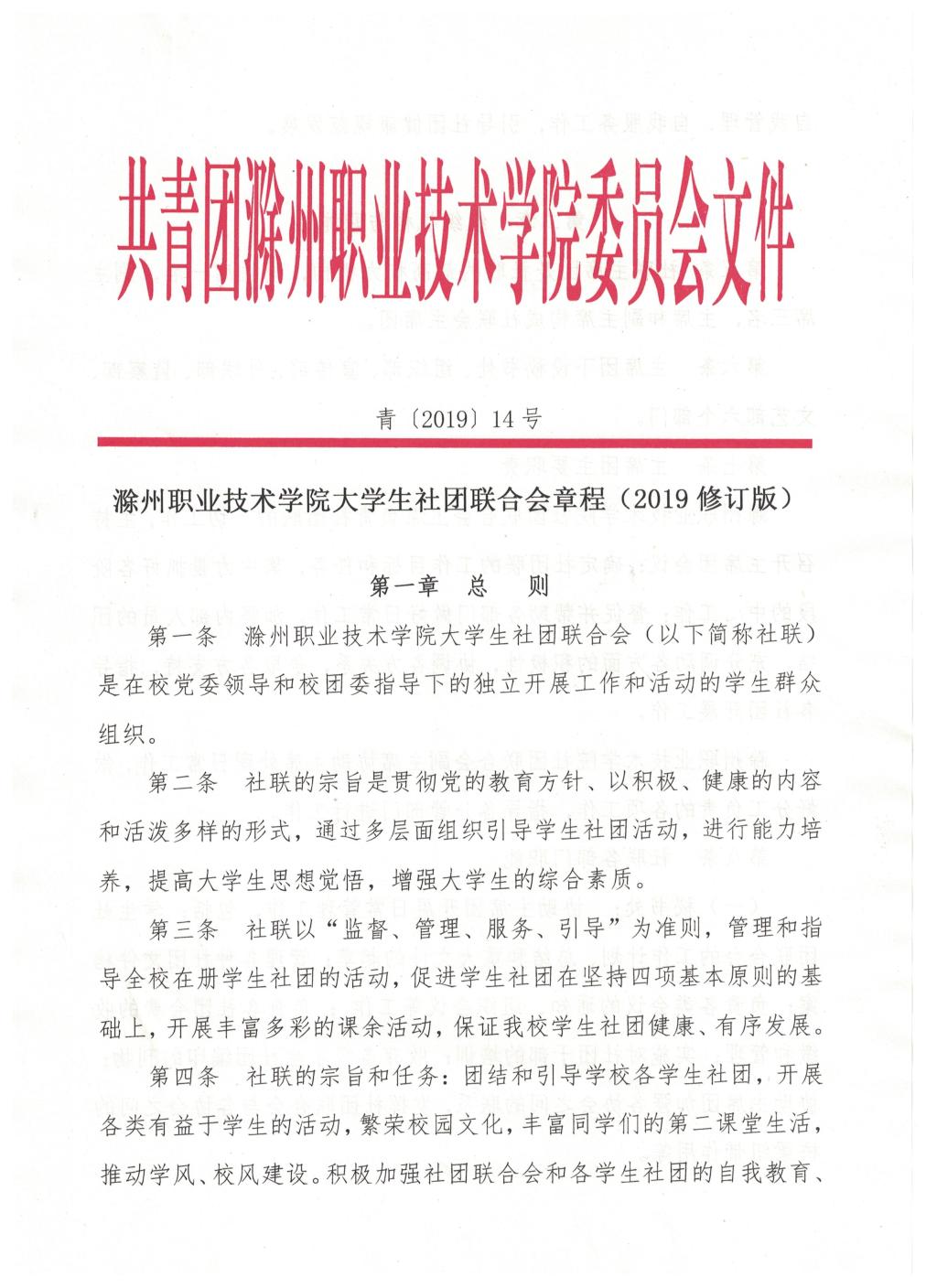 201914 Beat365唯一官方网站大学生社团联合会章程(2019修订版)