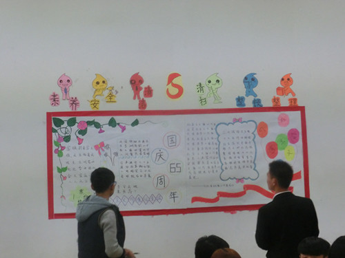 2014年10月22日,经济贸易系组织14级各班开展建国65周年黑板报评比活动。