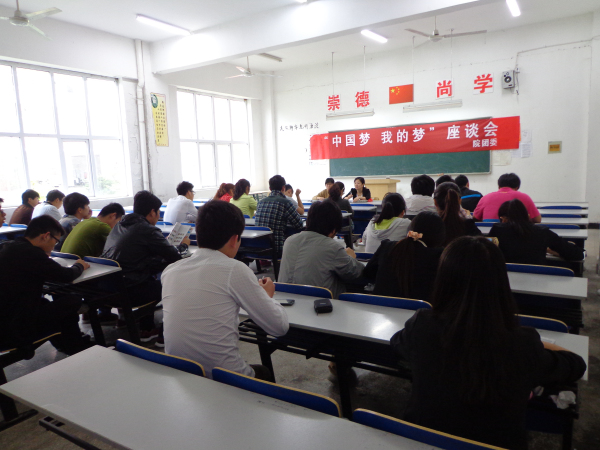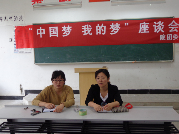为了引导广大学生为实现国家富强、民族复兴、人民幸福的伟大中国梦而发奋学习。2013年5月31日中午,由院团委举办的“中国梦 我的梦”座谈会在5111教室顺利举行。参加此次座谈会的有院团委书记王蓓蓓,院团委老师朱婷婷,汽车系辅导员吴佳佳。
