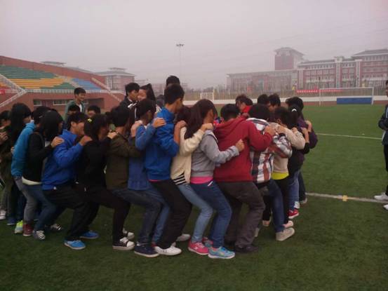 为了锻炼新进学生会成员的团结与毅力,对干事们进行了团结的游戏。以坐到每人的腿上为主,围成一个圈,进行走步训练,看似简单的游戏,需要的是每个人的配合。尽管在过程中有过失败,但干事们仍不放弃,在响烈的口号中,他们成功了,成功的走了起来。