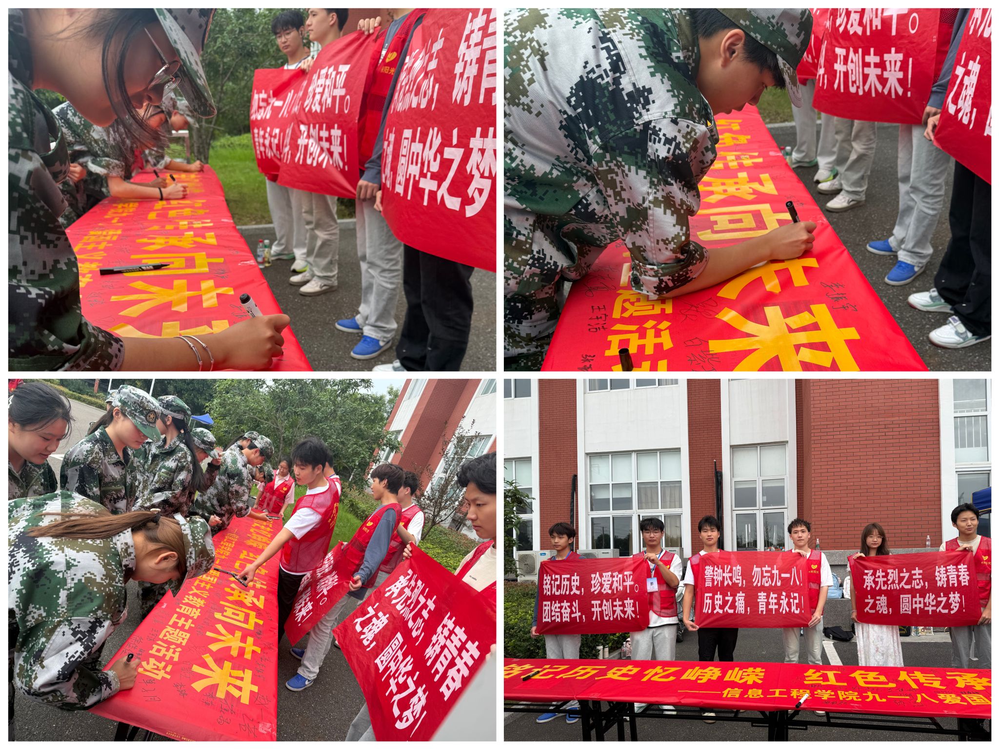 活动中,团总支团干率先在横幅上郑重签名,作出表率。2025级新生积极响应,有序签名,表达铭记历史、热爱祖国、担当使命的坚定决心。现场气氛庄重而热烈,大家在交流中深化历史认知,展望大学生活,让红色基因深植心间。