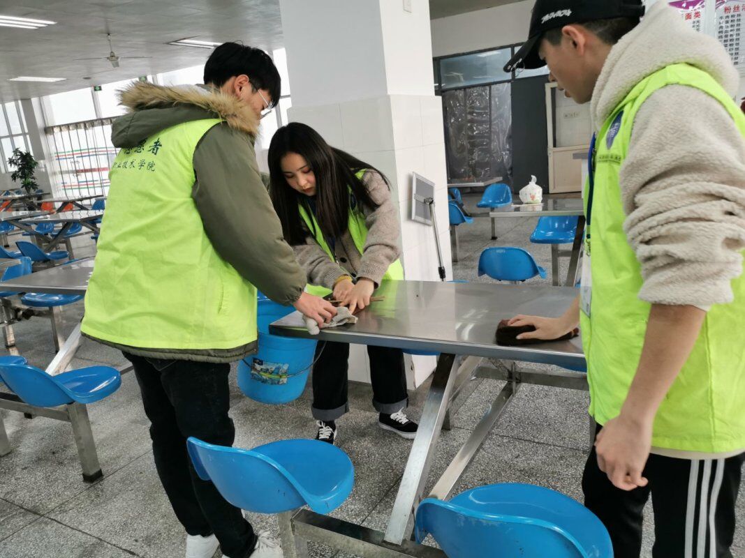为营造一个文明、洁净、温馨的就餐环境,倡导Beat365广大师生文明就餐, 12月5日第34个国际志愿者日,Beat365“小青亭”志愿者开展清扫校园食堂之“走进文明食堂”志愿活动。