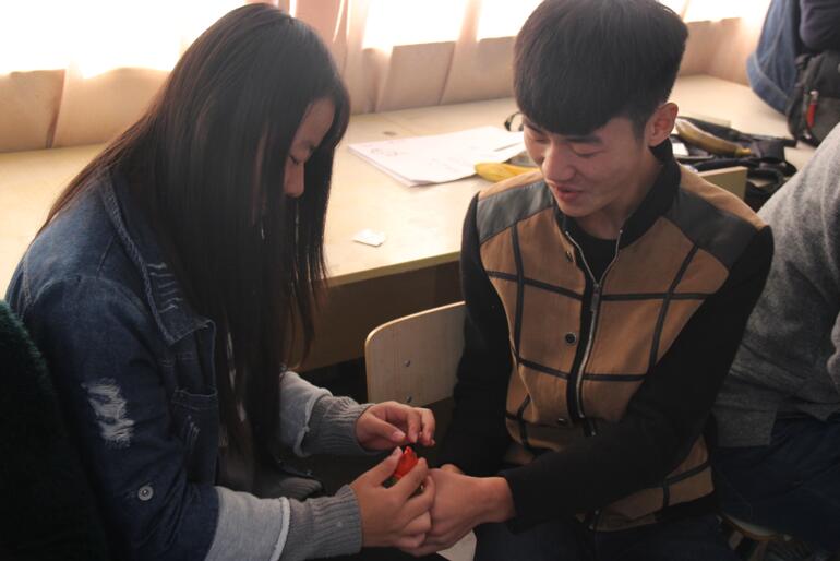 第三天,孙宁老师提出的condom演示让很多同学感到尴尬,但是当人手一根香蕉和避孕套的时候,大家还是大方地跟着老师学习避孕套的用法,积极地参与进来。