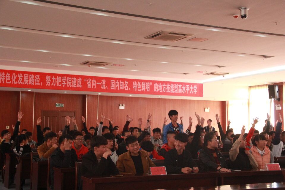 活动开始,由主持人宣读比赛规则后正式开始比赛。本次知识竞赛共分必答、抢答、风险三个环节,采用记分排名制。在必答题环节中,各队选手渐入佳境,稳扎稳打,一时难分高下。抢答环节中,各队选手针锋相对,互不示弱,把赛场气氛推向高潮,再加上台下观众鼓掌助威,热情的呼喊,让竞赛气氛非常紧张、充满悬念。风险犹存,仍需谨慎,取胜的关键还是风险环节,各队选手审时度势,部署战略,精诚合作,为争取最终的胜利加油。最终机电系参赛代表队以110分的成绩取得一等奖;信息系、汽车系、传媒系获得二等奖;经贸系、土木系、食品系、互联网学院获得三等奖。