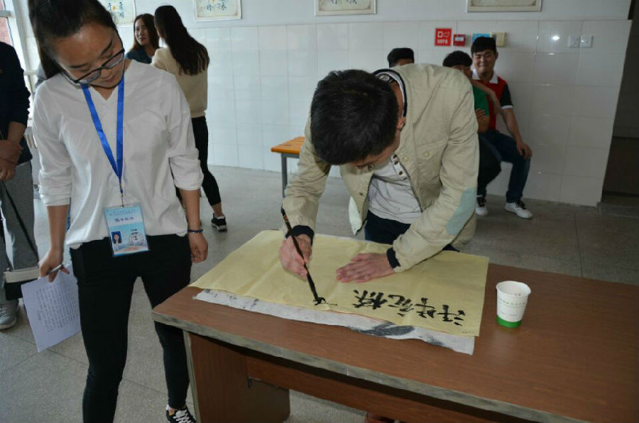 主持人叙述比赛规则后比赛正式开始。比赛分为三轮,第一轮,各系队员在主持人的宣题下,用毛笔在纸上写出词语或成语,参赛人员聚精会神,赢得围观同学的频频注目。第二轮,通过主持人说出诗词的上句或下句,参赛人员写出相对应的下句或上句,参赛选手专注的写出所想的答案。比赛第三轮为名次争夺战,参赛选手们用自己最好的状态来迎接最后的挑战,并在一番角逐后,经贸系穆明君摘得桂冠,汽车系王成建、传媒系王佳慧并列第二,汽车系张梦勇、信息系孙怀云、经贸系周文龙、信息系赵士贤等人位列第三。