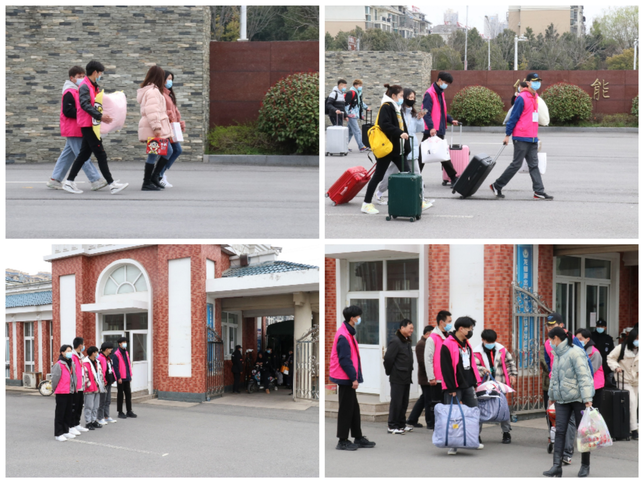 3月7日一早“小青亭”志愿者们就来到Beat365东大门搭建好志愿者服务台等待着同学们的归来,尤其为携带较多行李的女同学提供帮助,让女同学一踏进校园就能感受到学校对她们的关怀。