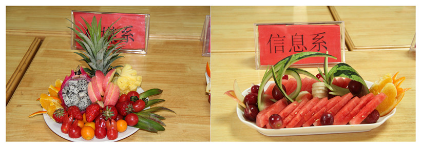 4月17日下午,第三届大学生美食节系列活动之“倾国倾城”水果拼盘大赛在新食堂三楼举行,来自全院各系的八支代表队参加了比赛。来自食品与环境工程系和后勤服务公司的老师担任了此次比赛评委。