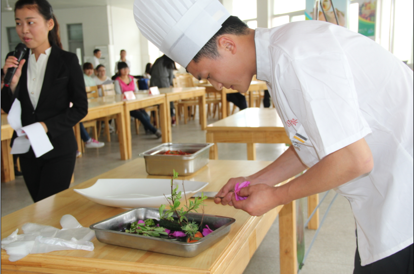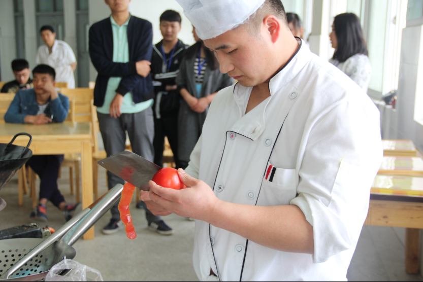 4月29日中午,第三届大学生美食节闭幕式暨“厨神争霸赛”在新食堂三楼火热开赛,这标志着历时半个多月的第三届大学生美食节即将落下帷幕。学院总务处副处长、后勤服务总公司经理胡凼,学院团委书记王蓓蓓,后勤服务总公司副经理王立新,学院团委副书记刘杰,后勤公司胡永光、王书籍老师、食品系吴剑安老师和来自全院的学生代表观看了比赛。