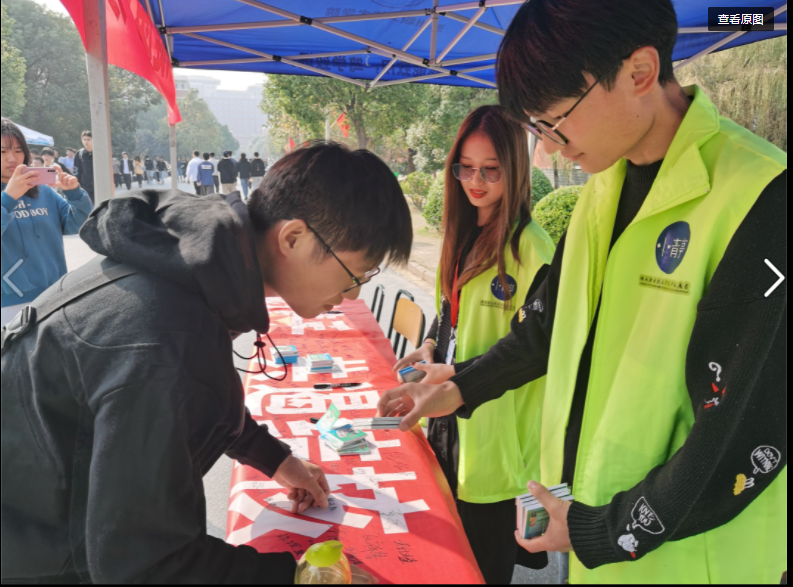活动开始时,“小青亭”志愿者在充分了解结核病的相关知识的基础上,积极的向前来咨询的同学讲解结核病预防的相关知识,将防治结核病的宣传单发放到学生手里,并组织学生在“你我携手 共遏结核”的横幅上签字。