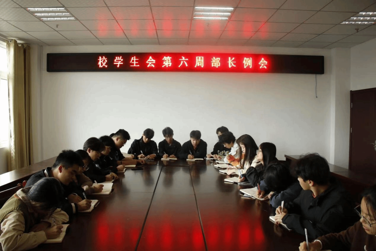 2023年10月8日中午12:30,校学生会在大学生活动中心317召开了本学期第六次部长例会。本次例会由团委陈苗老师主持,王淋老师、主席团成员及各部门部长参加。