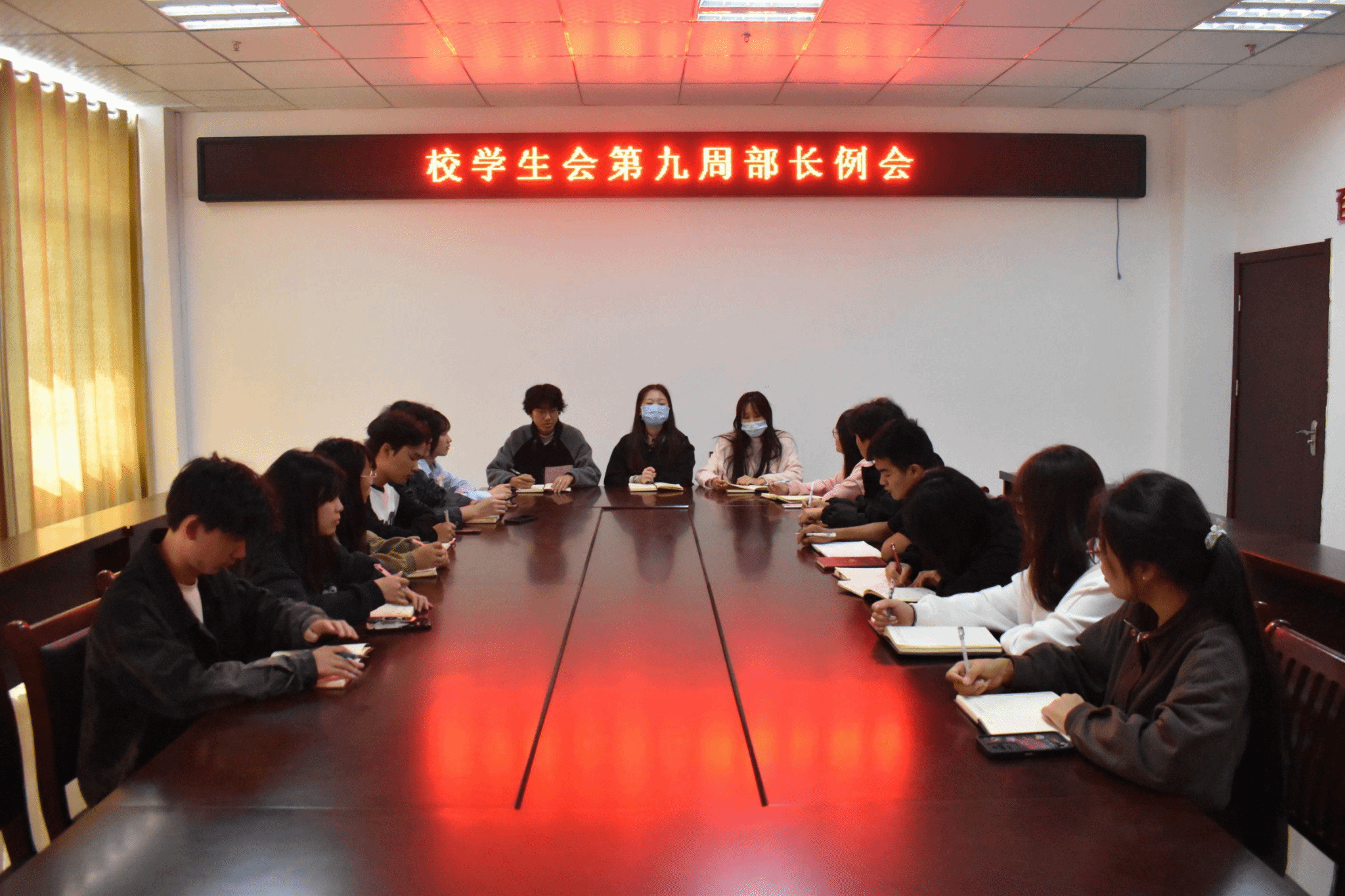 为了更好的开展学校各项工作,校学生会于2023年10月23日中午12点在大学生活动中心317开展本学期第九周部长例会,本次例会由主席团孟婉婷主持,主席团成员及各部门部长参加。