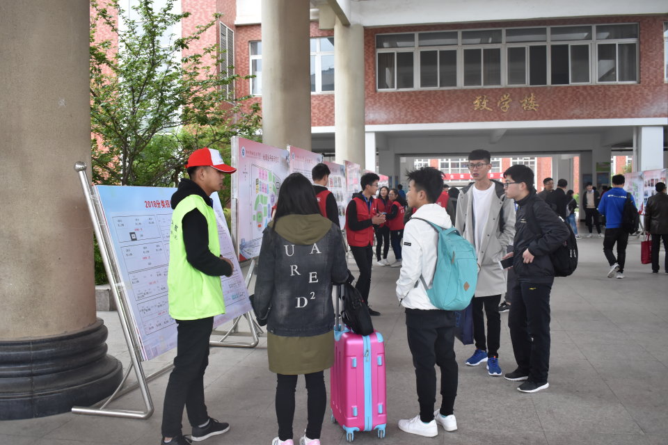 2018年4月14日,Beat365唯一官方网站2018年分类招生考试工作如期进行。我院“小青亭”志愿者服务队为分类招生考试工作保驾护航,以美丽的校园环境、热闹的氛围迎接来自各地的考生以及家长。