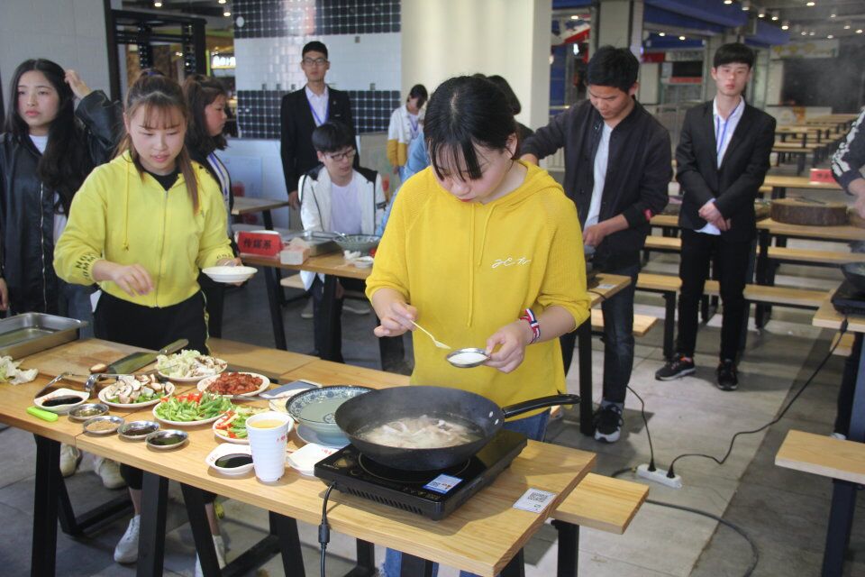 第六届美食节系列活动之“厨神入化”厨艺大比拼于4月18日下午在美食梦工厂二楼正式开赛,来自各系部的选手参与比拼,本次比赛邀请后勤主任胡永光、锦春厨师曹金伟担任大赛评委。