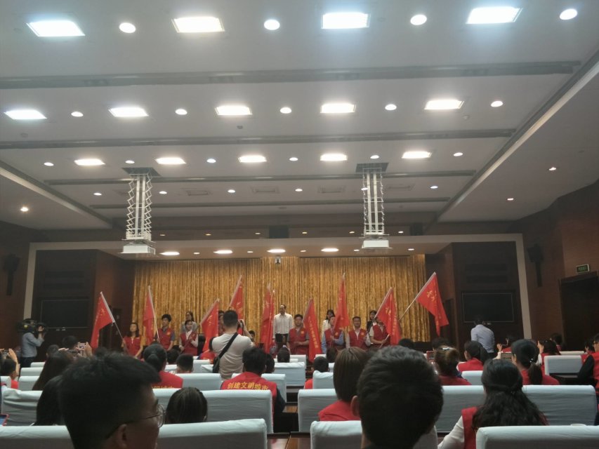会议伊始对青年志愿服务队进行授旗仪式,随后由共青团滁州市委副书记郝仙红宣读纪念“五四”运动活动安排并进行了大致的介绍,就创建全国文明城市青年志愿者服务队的重要意义讲述青年志愿者服务队的成立情况及服务范围,规模覆盖滁州市各个地点,在滁州市全国文明城市创建中起到了模范作用。滁州市委副书记朱诚对滁州市青年志愿者的表现提出了表扬与意见,并表示作为当代学生和新一代的青年志愿者应为实现伟大中国梦而奋斗,为滁州市的发展做出力所能及的贡献。