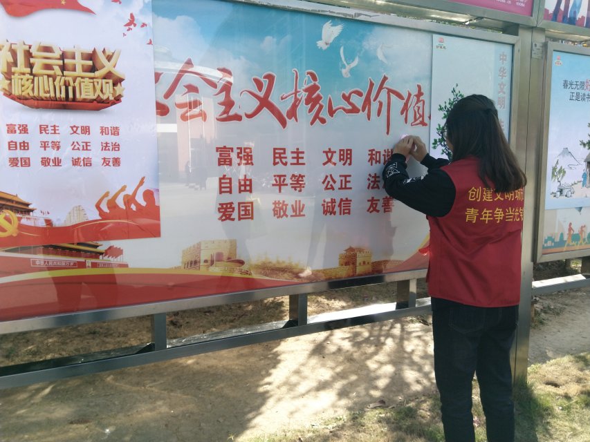 在进行简单的任务分配后,志愿者们对展板进行了彻底清理,拿着毛巾、脸盆为学院宣传栏、公示栏和展板除去灰尘,打扫中的志愿者们成为了一道亮丽的风景线。所有人都积极参与,将展板擦的一尘不染,小小的缝隙也被清理得干干净净。同学们用自己的实际行动为学校增添一份请新,一抹明亮。志愿者们经过近两个小时的劳动,学院的宣传栏、公示栏以及展板的面貌都焕然一新。