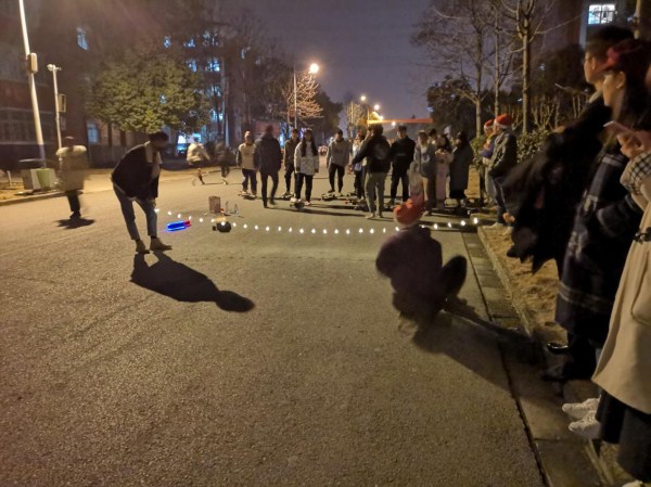 活动开始,首先由滑板社成员带来一场精彩的滑板秀,便引得围观学生的阵阵掌声。随后合唱团及滑板社成员开展了“无底线滑板”娱乐赛,双方参赛人员纷纷展现出各自高超的技巧,其他成员则在旁边维持现场秩序。