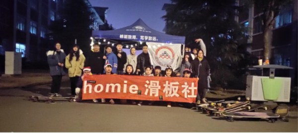 为了增强社团之间的友谊,加强社团成员之间的交流。春之声合唱团与Homie滑板社于2018年12月24日晚在女生宿舍二号楼下举办“圣诞嘉年华”活动。参加本次活动的人员是春之声合唱团与Homie滑板社全体社员。