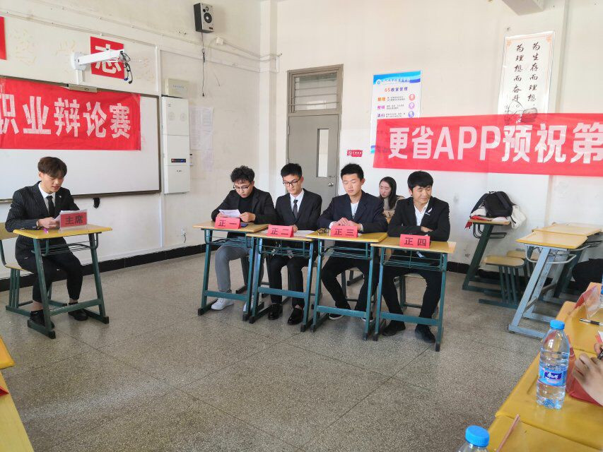 为建设我院优良学风,丰富同学们的课外活动,培养大家的思辨能力和语言表达能力,大学生职业发展协会举办了“更省杯”职业辩论赛,此次辩论赛参赛队伍共有16只,比赛共分初赛、复赛、决赛三部分。三场比赛的裁判为会计协会会长袁昌贵、营销协会会长周永乐、职业发展协会会长高童、营销协会部长申梦梦,汽车协会会长刘天元、营销协会会长周永乐,绿源环保社社长程睿、商贸协会会长陈样。主持本次活动的主持人为广播站社员王丽莎、黄璟。