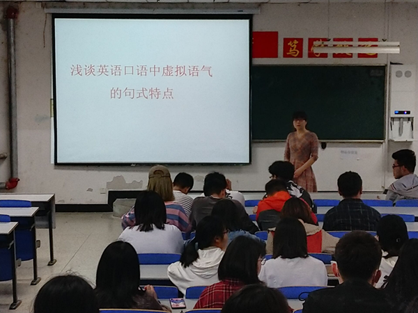 齐老师在对英语方面有独特的造诣,本次讲座主要讲的是从语言学的视角研究和探讨英语虚拟语气中的适用功能,分析虚拟语气的安慰功能、假想功能、委婉建议功能、含蓄抱怨与责备功能、警告与命令功能、对现实不满或拒绝功能、感激功能等语用功能。老师在课堂上进行了详细的讲解,也做了练习巩固。在场的每一位同学都全神贯注的听着,老师和同学们积极的互动带动了整场讲座的气氛,最后在经久不息的掌声中结束了本次讲座。